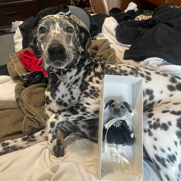 Lady Meowlie transforms everyday pet stories into handmade, anthropomorphic art—singular pieces that celebrate your furry friend and your creative self.
